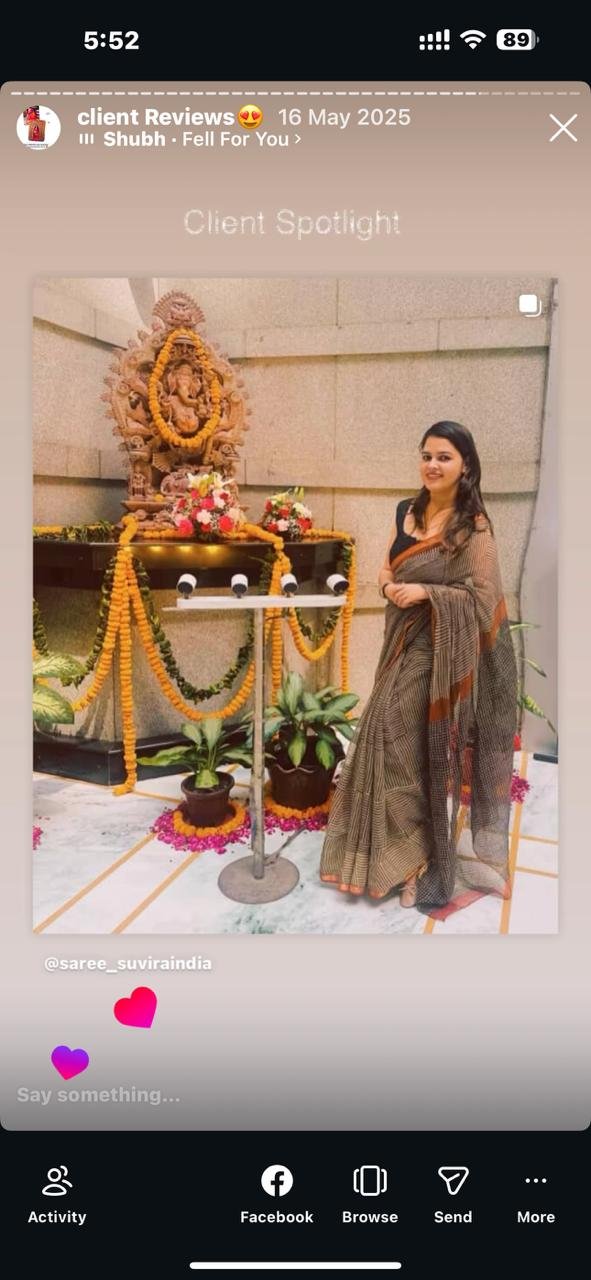 Step into sophistication with Suviraindia.com — where every handmade saree is a statement of refined heritage and timeless beauty. Woven for those who wear elegance like a second skin.