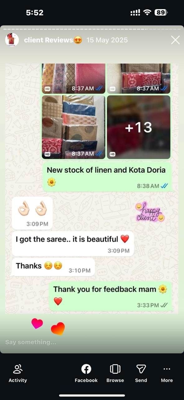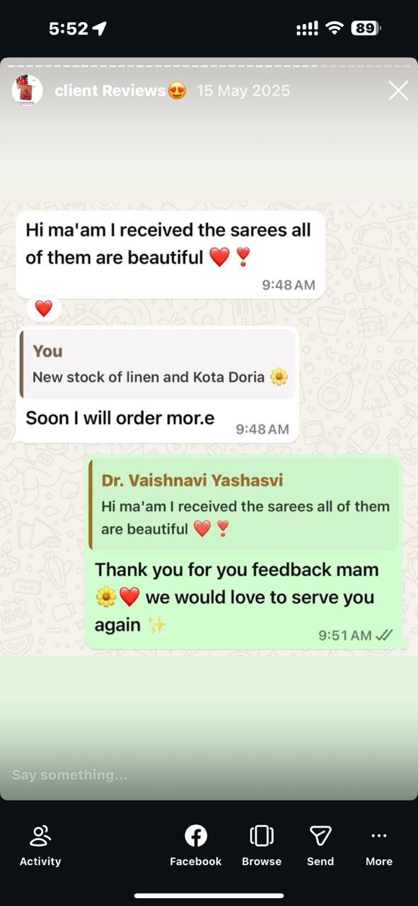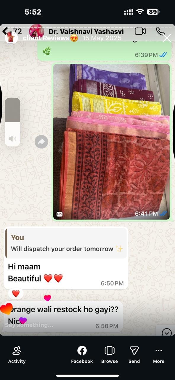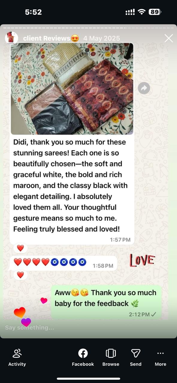 A saree is more than just a garment — it carries culture, craftsmanship, and stories woven over generations. Our online store brings together a curated collection of heritage block prints, loom legacy weaves, timeless linen, pure mulmul tales, and golden-thread masterpieces, crafted for women who value authenticity and elegance. Shopping online allows you to explore designs at your own pace, understand fabrics, visualize drapes, and choose sarees that truly reflect your style — all from the comfort of your home.