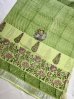 The soothing pastel green shade gives a fresh, graceful look, making it ideal for office wear, daytime functions, casual gatherings, and summer styling. Every saree reflects traditional craftsmanship with a modern, minimal aesthetic.