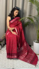 The powerful contrast and traditional patterns make it an ideal choice for formal events, evening gatherings, festive celebrations, and professional settings. Lightweight yet high on impact, this saree reflects the perfect balance of bold contemporary style and ethnic roots.